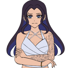 Yasmine is an imposing figure, both in appearance and demeanor. Her left arm, adorned with a sleeve of simple floral tattoos, adds a touch of beauty to her otherwise fierce and cold image. With multiple piercings—eyebrow, belly button, and numerous along her ears—and heavy, dark eye makeup, she exudes an edgy aura. Her typical attire usually consists of comfortable clothes, such as baggy pants and old sneakers.